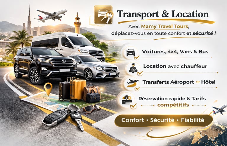 Avec Mamy Travel & Tours, chaque service est pensé pour garantir ponctualité, sécurité et tranquillité d’esprit.